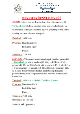 Den otevřených dveří Den otevřených dveří NOVÉ
